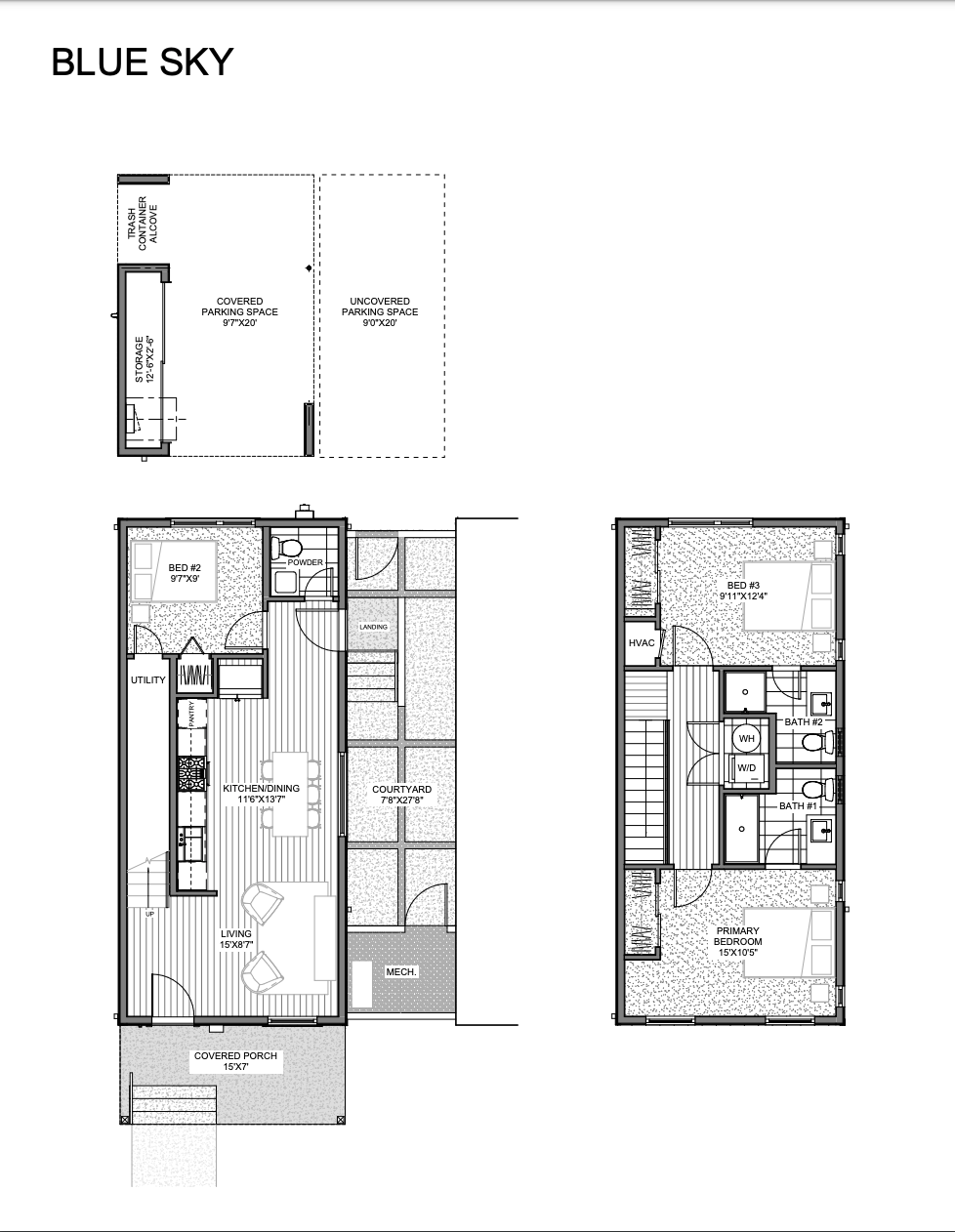 Introducing the Blue Sky floor plan, a beautifully designed 2-story home offering 3 bedrooms and 2.5 bathrooms in 1,142 sqft of well-planned space. The open-concept living and kitchen areas create a bright and inviting space, perfect for entertaining or relaxing. Upstairs, you'll find two additional bedrooms and a full bathroom. A convenient carport provides parking and extra storage. Ideal for families or those who love to entertain, the Blue Sky combines modern style, comfort, and functionality.